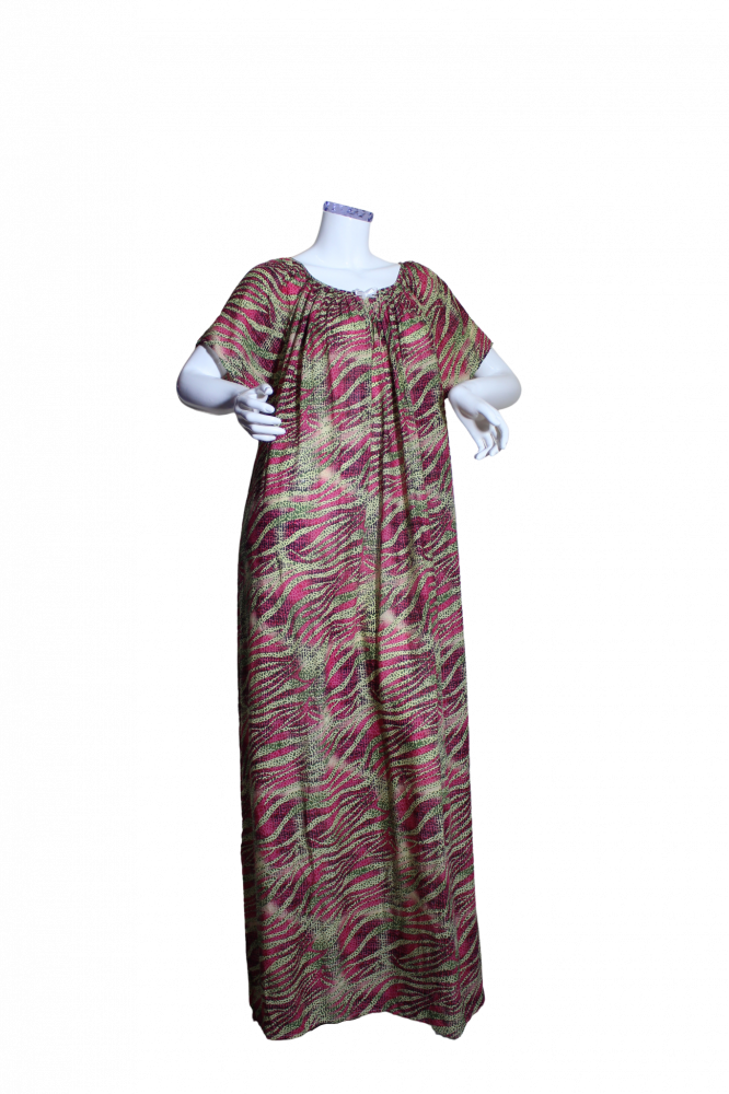 جلابية طويلة بطبعات وأكمام قصيرة وياقة مستديرة