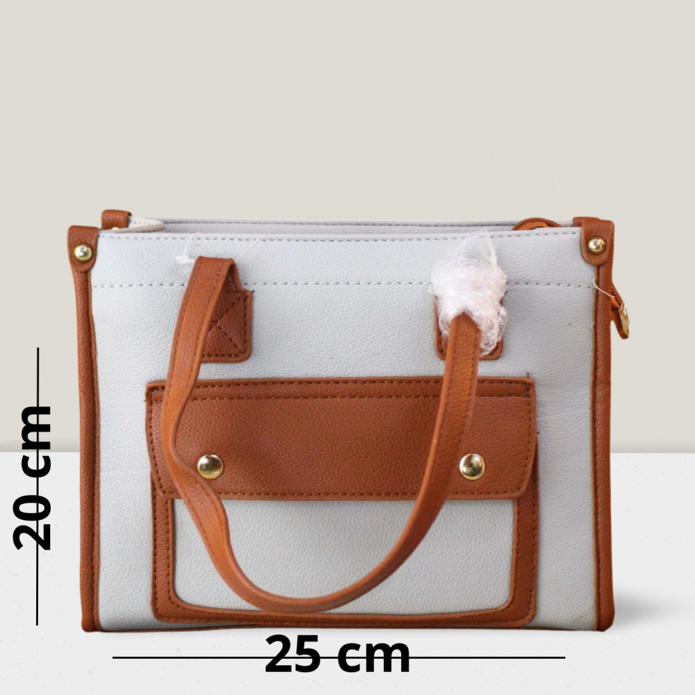 حقيبة يد نسائية جلد بلونين متمايزين بمقبض علوي بحجم متوسط إلى كبير