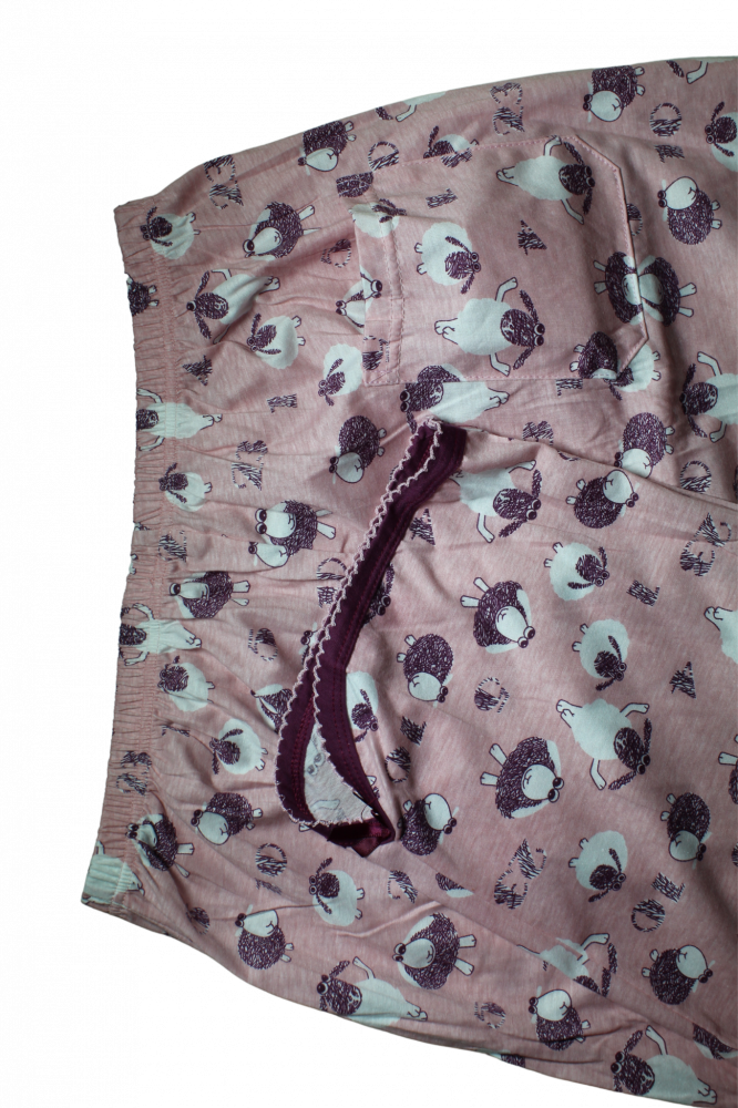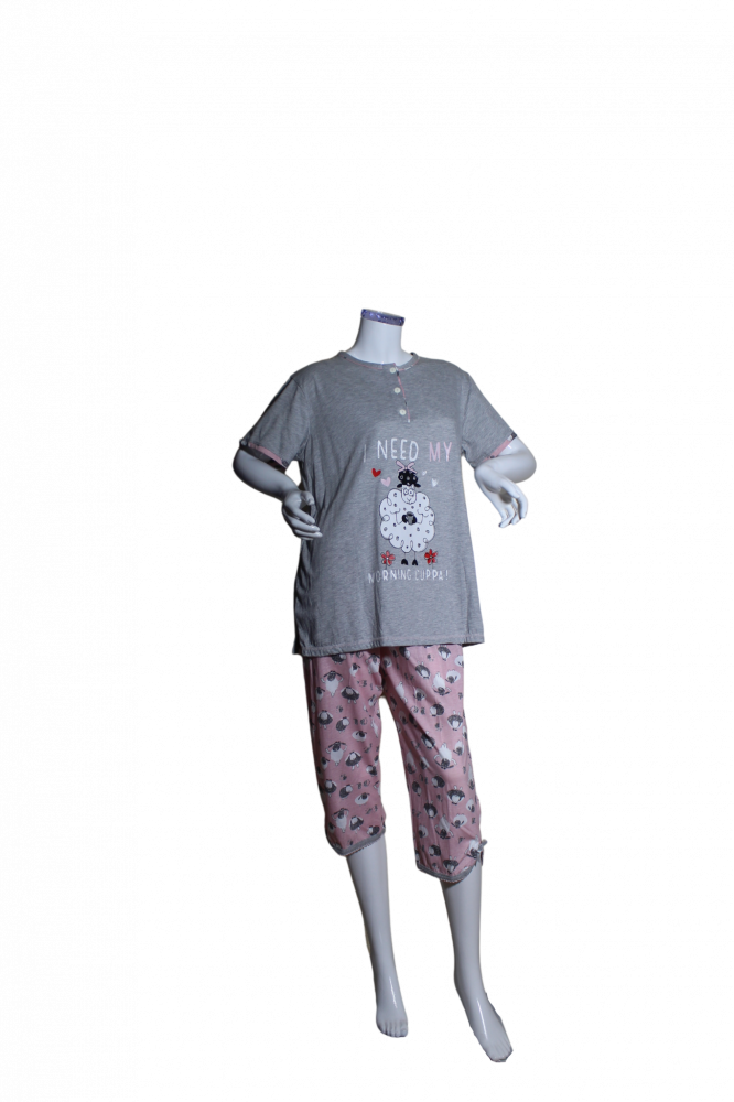 طقم بيجامة بطبعة و بألوان مميزة بلوزة بأكمام وياقة مستديرة وسروال قصير لطول الركبة