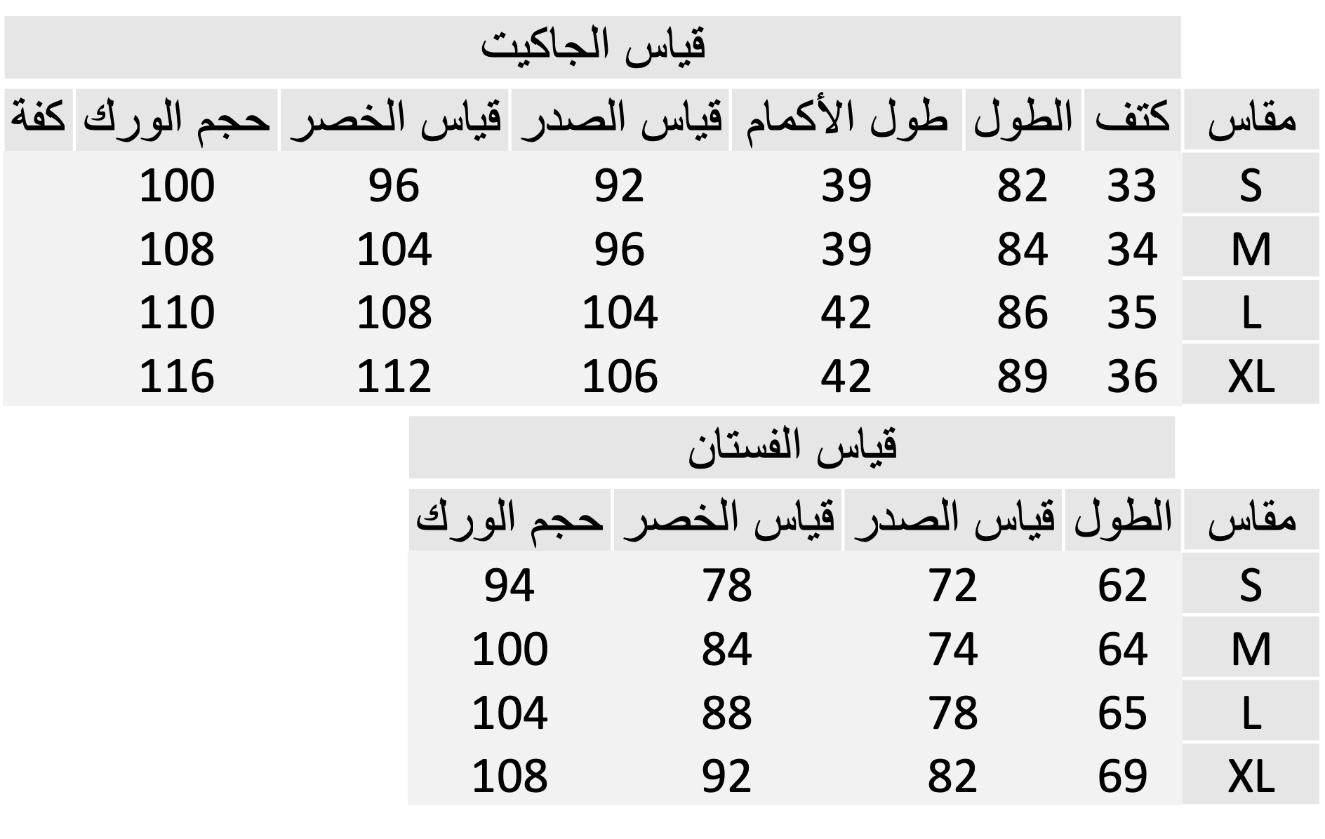 - عدد القطع : 2 قطع (قميص قصير ، جاكيت)