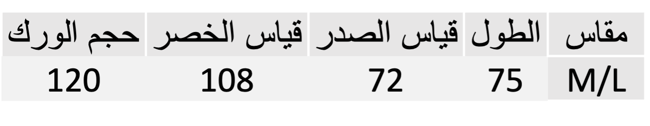 ملاحظة : تم أخذ قياسات المنتج بشكل يدوي، وقد تختلف القياسات بمقدار 1 - 2 سم.
